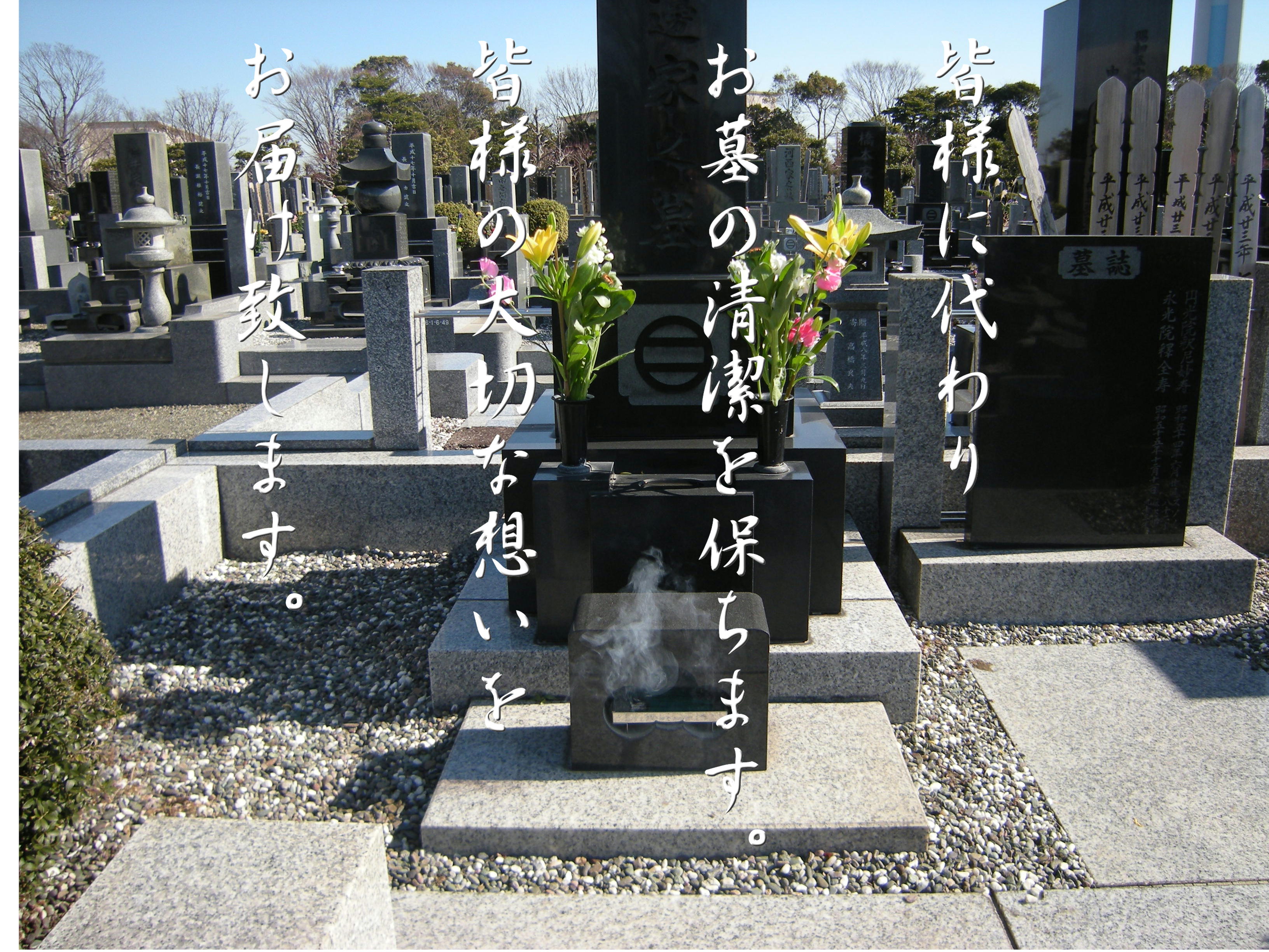 ばせていただき、墓地清掃士として認定を受けております(墓地の清掃に限らず、